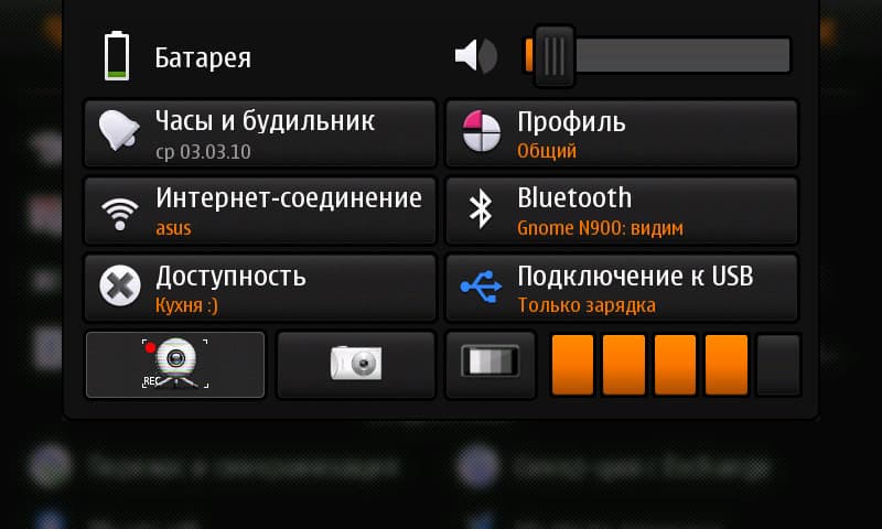 В автономном режиме, в отличие от аппаратов на S60, не получится включить ни Bluetooth, ни WiFi. Поэтому опять нужно будет идти в репозитории и скачивать дополнительное ПО, позволяющее выключать телефонный модуль, оставляя активными прочие сервисы связи. На данный момент мы рекомендуем апплет «Cellular Modem Control Buttons», добавляющий в меню кнопки «Power» переключатель режимов «Телефон/КПК». Плохо пока то, что программа не запоминает своё состояние и не включает его автоматически при включениии телефона.