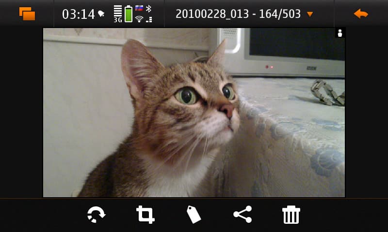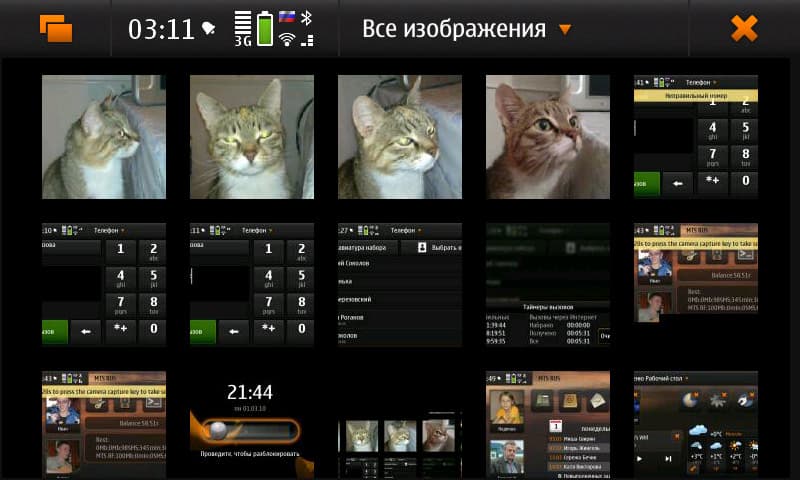 «Галерея», как уже было сказано, представляет собою почти привычную пользователям Nokia свалку всех картинок, до каких только программа дотягивается, в одну кучу. Однако, появились некоторые изменения. Неужели (!) Nokia, наконец, начала делать шаги к усовершенствованию не только способов вращения ленты картинок при просмотре «Галереи», но и способов отделения мух от котлет, а именно, фотографий от прочего изобразительного хлама, который попадает в телефоны отовсюду буквально. В общем, теперь есть возможность сортировать изображения по папкам. К сожалению, по-умолчанию стоит «Все изображения», и изменить это нельзя.
