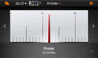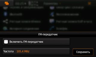 Очень полезным в ряде случаев оказался встроенный FM-трансмиттер (передатчик). Работает по обычной схеме: выставляем частоту, и включаем, после чего телефон начинает звук передавать по радио. Передатчик слабоват, и частенько требуется помощь стороннего приложения (FM-Boost), которое устанавливает уровень передатчика в постоянные 118. Неприятность в устройстве самого передатчика такова: ставим плеер на паузу — передатчик через некоторое время отключается. Это, разумеется, неудобно, потому что бывает нужно выключить на магнитоле звук, и при работающем плеере — это пропущенные песни. Оно надо? FM-приёмника по какой-то причине в виде приложения Nokia не сделала, приходится пользоваться опять же сторонней разработкой.