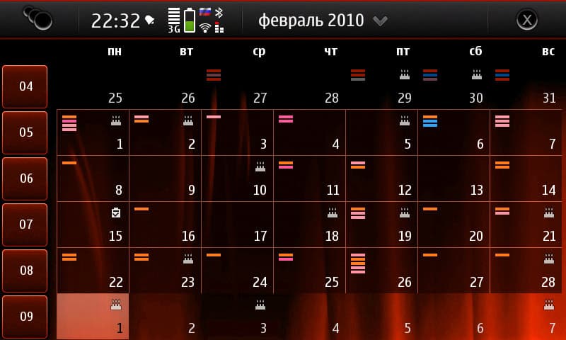Предлагаю посмотреть несколько тем оформления на примере отображения Календаря и системного меню; на них неплохо видна работа с цветами и внятные изменения прорисовки деталей интерфейса. Ляпов, к слову, становится всё меньше, а темы — всё аккуратнее. На maemoitalia.com темостроительство идёт полным ходом, с иконками, с перерисовкой интерфейса — в общем, всё неплохо. Хотя по цветовым решениям, да и по элементным выбор пока не особо велик. Светлых тем, например, вообще почти нет. А поначалу это был вообще ужас и моральный террор.