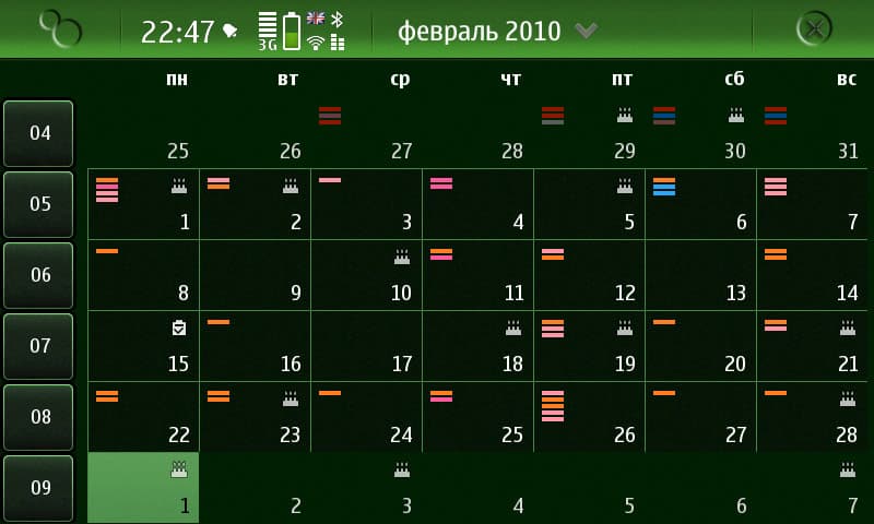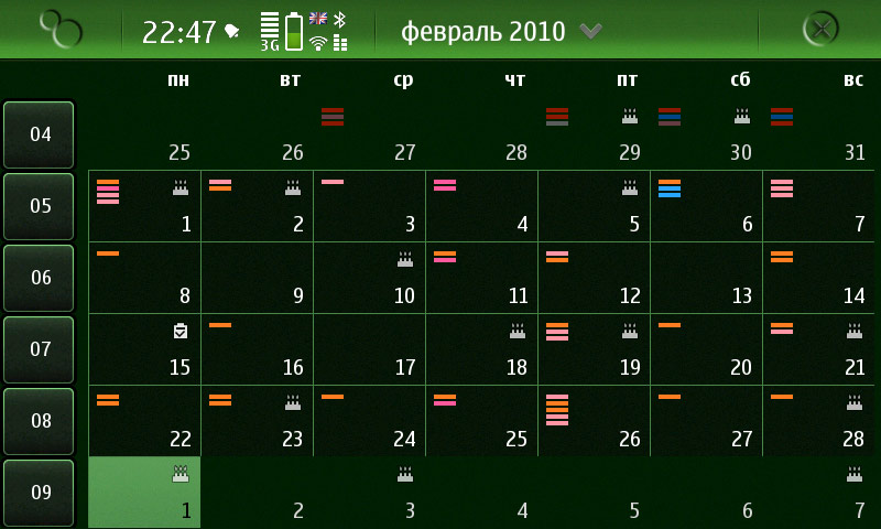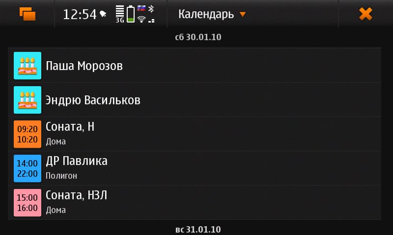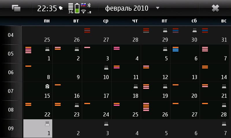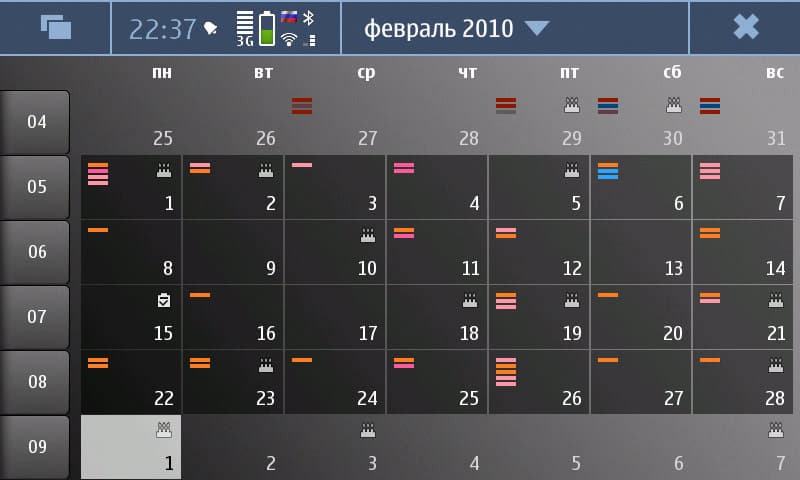 Календарь порадовал, особенно поддержкой сразу нескольких баз событий, которые можно создавать самому, включать и выключать, видеть загруженность (столько-то событий для каждой базы) и отличать их друг от друга по цвету. А не радует вовсе система назначения сигнала для Дней Рождения: только накануне, то есть, днём раньше.