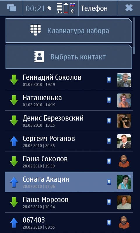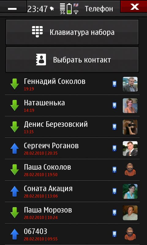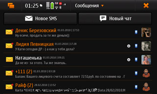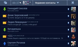 И внутри «Книги контактов» есть дополнительные и очень оригинальные, кстати, функции: сортировка по последним событиям и вывод последних событий для выбранного контакта. Это тоже списки по 60 элементов, и в них входят не только номера, но и SMS-сообщения, и сообщения чатов. Эти возможности очень радуют, конечно, но вот полного «Журнала» нет. Здесь снова спасает сторонний разработчик (glogarchive, например), но длительности звонков и там не будет, а кроме того, не будет и данных сессий GPRS/WiFi — это притом, что те же проверки обновлений в «Диспетчере приложений», а также виджеты рабочего стола заставляют довольно активно пользоваться выходом в сеть.