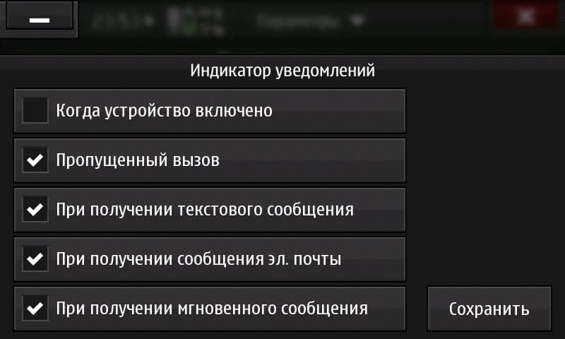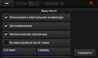 Настройки сгруппированы в пункте меню «Параметры». Здесь собрано всё, что потребуется: языки, дисплей, Bluetooth, ввод текста, соединения и так далее. Особо отметим хороший набор настроек для индикатора уведомлений (лампочка в левом нижнем углу аппарата). И то же для ввода текста: выбор любых (из списка) словарей для автоподстановки, а также возможность использования двух словарей сразу.
