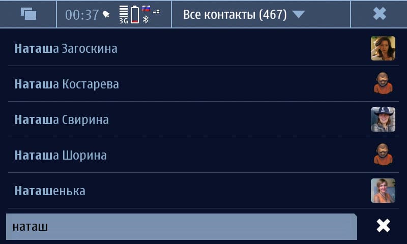 Про поиск в «Книге контактов» уже говорилось выше, здесь же хочется упомянуть о такой неприятности: при запуске поиска с рабочего стола (выдвижная клавиатура) первые несколько символов пишутся латиницей, какая бы раскладка не была включена. Это сильно мешает, и вынуждает держать на рабочем столе обязательно иконку для запуска «Книги контактов».