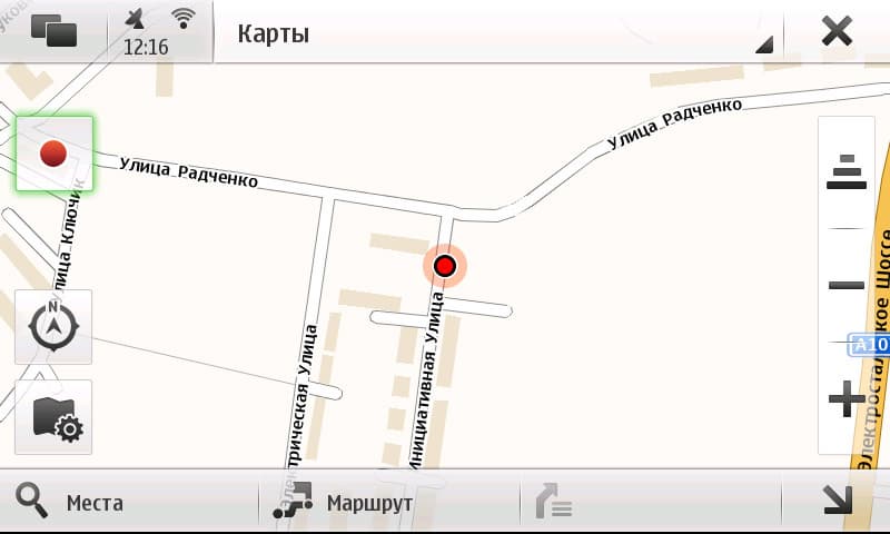 Сначала пара слов о GPS-навигации. Установлены Ovi Maps; весьма спорный продукт, даже после Nokia Maps на 5800 не очень хочется пользоваться. Всё, в принципе, есть, кроме голосовой навигации, но интерфейс таков, что в автомобиле пользоваться неудобно. Показа пробок нет, нормальной прорисовки развязок нет. Как пешеходный навигатор, в принципе, приемлем. Впрочем, работа самого GPS-модуля не очень радует, слабоват. Включаю ту же E75 рядом — уже и спутники, и навигация пошла, а на N900 всё ещё «Местоположение: низкая точность», да и той не будет, если отключить A-GPS.