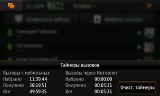 Вторая причина — слабое устройство звонковых сервисов в принципе. Нет, они оформлены очень интересно, и задумки хорошие, и есть функции, которых те же пользователи Nokia попросту заждались в своих смартфонах, но при этом исчезло то, к чему они на этих смартфонах привыкли. Например, «Журнал». Вот куда он подевался? Есть только общие таймеры вызовов и общий список вызовов, да ещё — отдельные списки для абонентов из него. Это второе — задумка очень неплохая, но реализована слабенько: та же длительность звонков нигде не фиксируется. А вот записей сессий GPRS (и WLAN) нет. И это притом, что виджеты с рабочего стола так и тянут свои хоботы к Интернету.