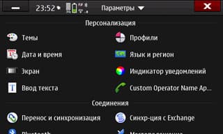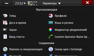 Первое, что сразу же стало напрягать, это кнопка для доступа в меню, а заодно и само меню. Кнопка эта — экранная, и работает так: если нет запущенных приложений, нажимаем и попадаем в меню, а если запущенные приложения есть, то сначала будут показаны они, и в меню только повторным нажатием. Очень и очень неудобно: никогда толком не знаешь, сколько раз нажать, чтобы попасть в меню. Что мешало сделать хотя бы как в той же S60: короткое нажатие — меню, чуть более длительное — список запущенных? Напрягает, мешает, привыкать не хочу, да и не только я, поэтому вопрос решается сторонним приложением (Shortcutd), позволяющим вход в меню и вызов списка запущенных приложений развесить на различные элементы управления (кнопка камеры, датчик приближения).