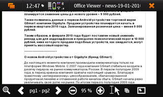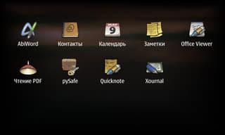 Офис «из коробки» представлен довольно известным платным пакетом Documents ToGo, который будет действовать 30 дней, а потом попросит денег. Для просмотра пакет годится вполне. Вместо него можно пользоваться пакетом, основанным на KOffice, тоже только просмотр. Редактирования толкового пока вообще нет. Имеется пока только AbiWord, который, например, такими вещами как электронные таблицы не занимается. Недавно портирован gnumeric (как раз занимается электронными таблицами). Оба продукта лишь портированы, толковой заточки под мобильную ОС и интерфейс N900 пока нет, и когда появится — неизвестно.
