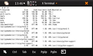В общем, что в результате будем иметь, если не поработаем немножко руками. Во-первых, обновление прошивки «по воздуху» требует свободных 42 МБ, которых, по наблюдениям, почти ни у кого не оказывается через недельку-другую после начала использования N900. Во-вторых, случаются такие конфузы как «свободная память в rootfs отсутствует», в результате аппарат начинает очень активно глючить и плохо работать. Лечится только аккуратным влезанием в файловую систему. Что помешало Nokia подумать обо всём этом до выпуска N900 в продажу? При 32 ГБ памяти пользователь получает постоянные сообщения о нехватке памяти и невозможности что-то сделать или установить.