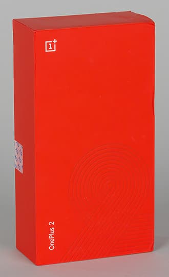 OnePlus 2 поставляется в продажу в совершенно иной, нежели первая модель, упаковке. Теперь это весьма небольшая по размерам коробочка стандартной прямоугольной формы, а не квадратной. Суперобложки нет, крышка снимается классическим способом, сохранена палитра красных и белых красок. Остался все тот же минимализм в оформлении: надписей и картинок практически нет, характеристики смартфона нигде не указываются. Какая-то минимальная информация приведена на приклеенном снизу стикере, но в основном там иероглифы — официально в Россию смартфон OnePlus не поставляется.