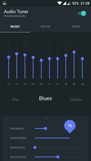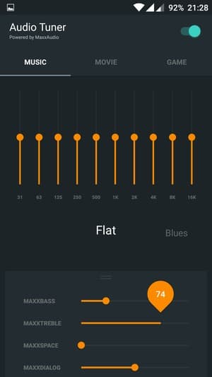 В звуковом плане OnePlus 2 весьма интересен. У аппарата встроен лишь один основной динамик, но в сочетании со звуковой системой MaxxAudio смартфон издает громкий, чистый, сочный и яркий звук, насыщенный всем спектром частот, включая басы. В наушниках ситуация ничуть не хуже, звучание качественное по всем характеристикам, придраться просто не к чему. По качеству звучания OnePlus 2 недалеко ушел от тех же смартфонов Oppo, что и неудивительно. Для воспроизведения музыки используется фирменный проигрыватель Google с возможностью ручных настроек в виде предустановленных значений эквалайзера. Поддержки FM-радио в смартфоне нет.