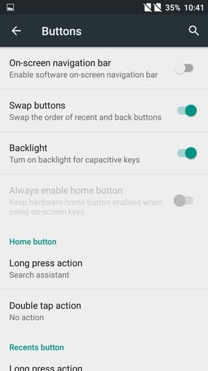 Центральная кнопка в обычном режиме выполняет функцию возврата к домашнему экрану, но делает это почему-то с перебоями, срабатывает далеко не всегда, что порой раздражает. Две кнопки по бокам от нее не имеют фиксированного предназначения: в настройках можно задавать им функции по своему усмотрению. Имеется возможность дублирования кнопок виртуальным рядом на экране.