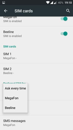 Смартфон поддерживает работу с двумя SIM-картами, и в целом работа с ними в меню организована по знакомому принципу: можно любую из SIM-карт назначить основной для организации голосовых звонков, передачи данных или отправки SMS-сообщений; при наборе номера также можно выбрать желаемую карту в контекстном подменю. С сетями 3G/4G может работать SIM-карта в любом слоте, однако одновременно в этом режиме может функционировать лишь одна из карт. Для смены назначений слотов карточки менять местами не требуется — это можно сделать прямо из меню телефона. Работа с двумя SIM-картами организована по привычному стандарту Dual SIM Dual Standby, когда обе карты могут находиться в активном режиме ожидания, но одновременно работать не могут — радиомодуль здесь только один.