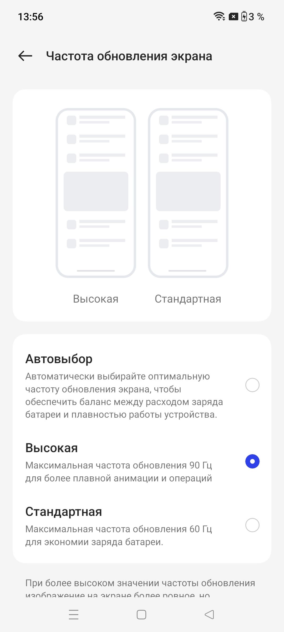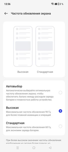 В настройках экрана можно включить режим с повышенной до 90 Гц частотой обновления: