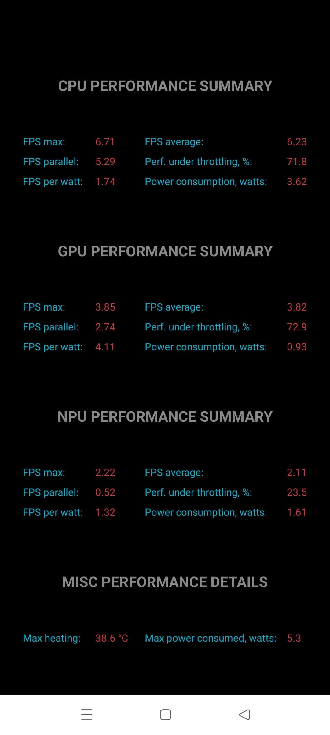 Тест на снижение производительности при нагреве мы проводим с помощью программы Burnout Benchmark, которая позволяет нагружать CPU, GPU и NPU: