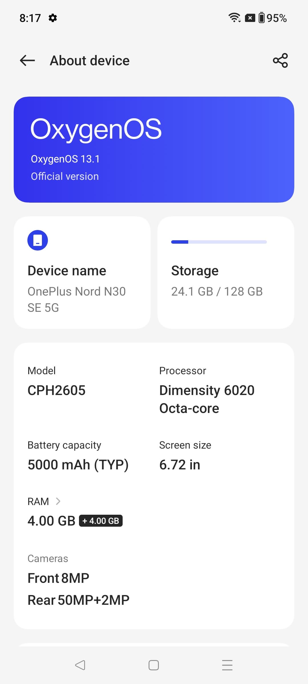 OnePlus Nord N30 SE имеет батарею со стандартным объемом 5000 мА·ч и демонстрирует стандартную автономность.