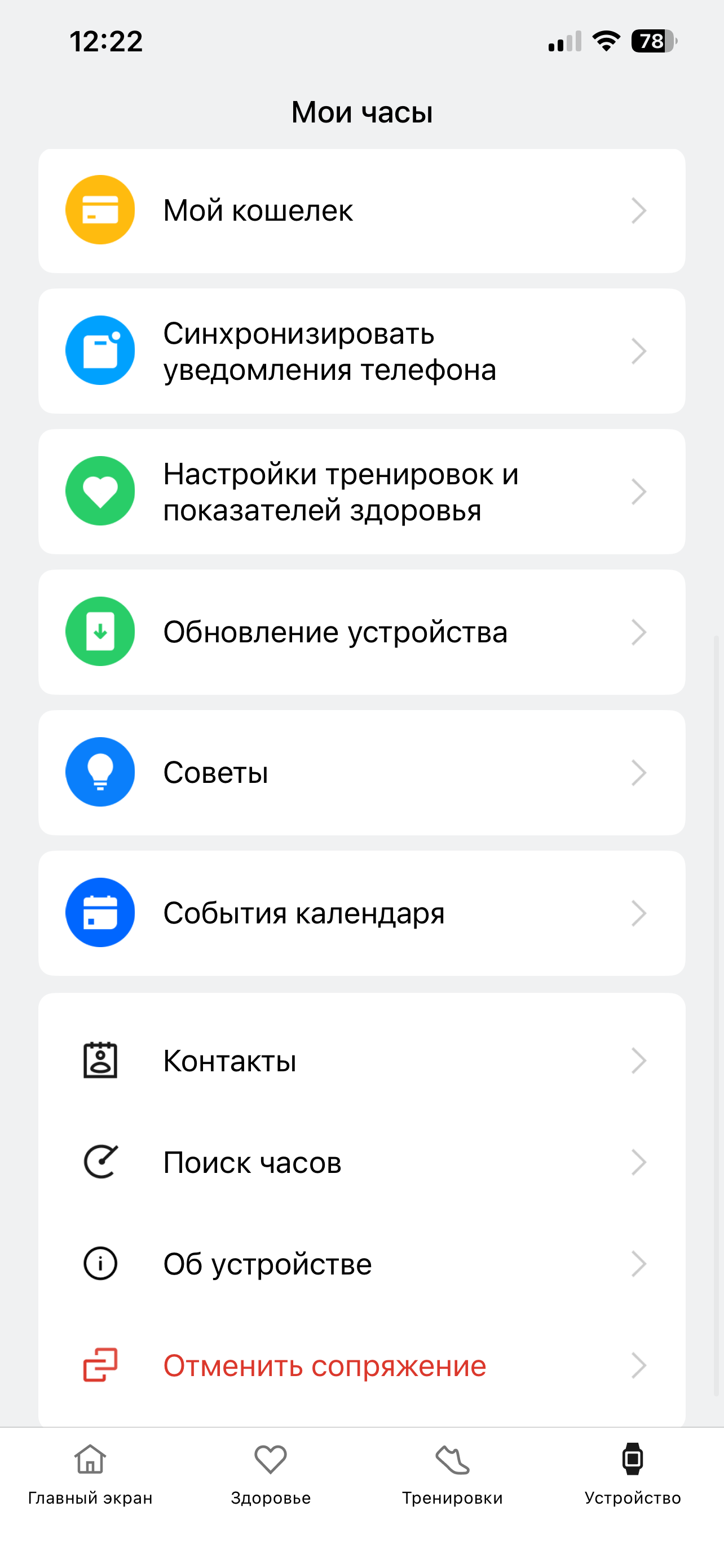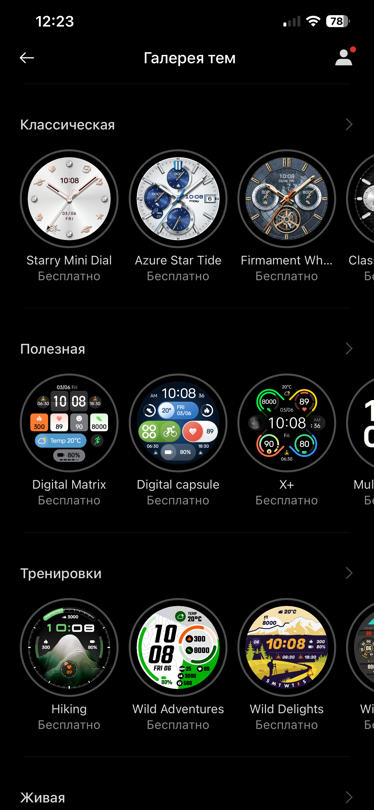 Ну и, наконец, «Устройство». Здесь самое полезное — доступ к настройкам и альтернативным циферблатам. Последних очень много, выбор действительно большой, все бесплатные (по крайней мере, из тех, что были на момент тестирования). Правда, опять же, загружаются они очень долго. Допустим, циферблат весит 3,5 МБ, но ему нужно несколько минут, чтобы оказаться на часах. Вкупе с вышеперечисленными особенностями это вызывает подозрение, что дело в серверах OnePlus — слишком мало доступно для России. Или же трафик идет не напрямую.