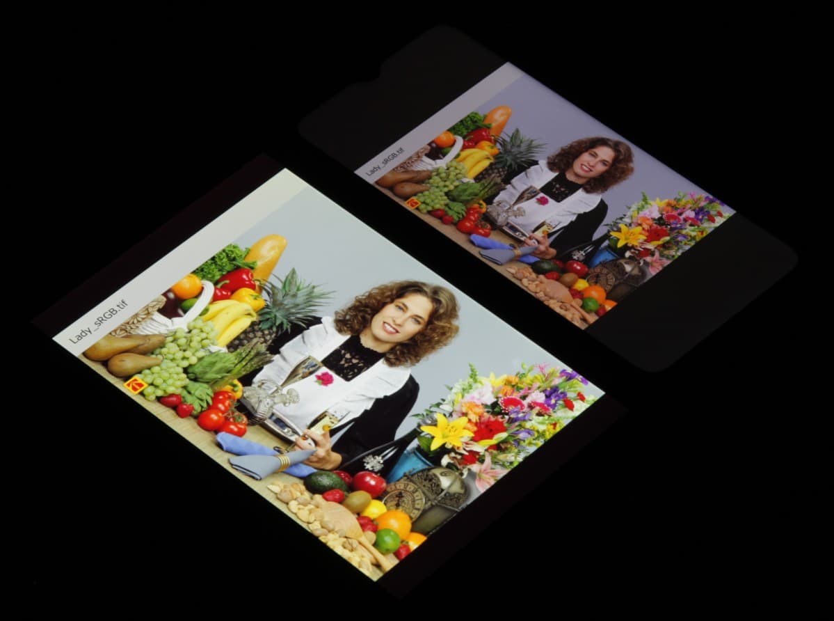 Видно, что цвета не сильно изменились у обоих экранов, но у Oppo A16 контраст уменьшился в большей степени из-за сильного высветления черного и большего снижения яркости.