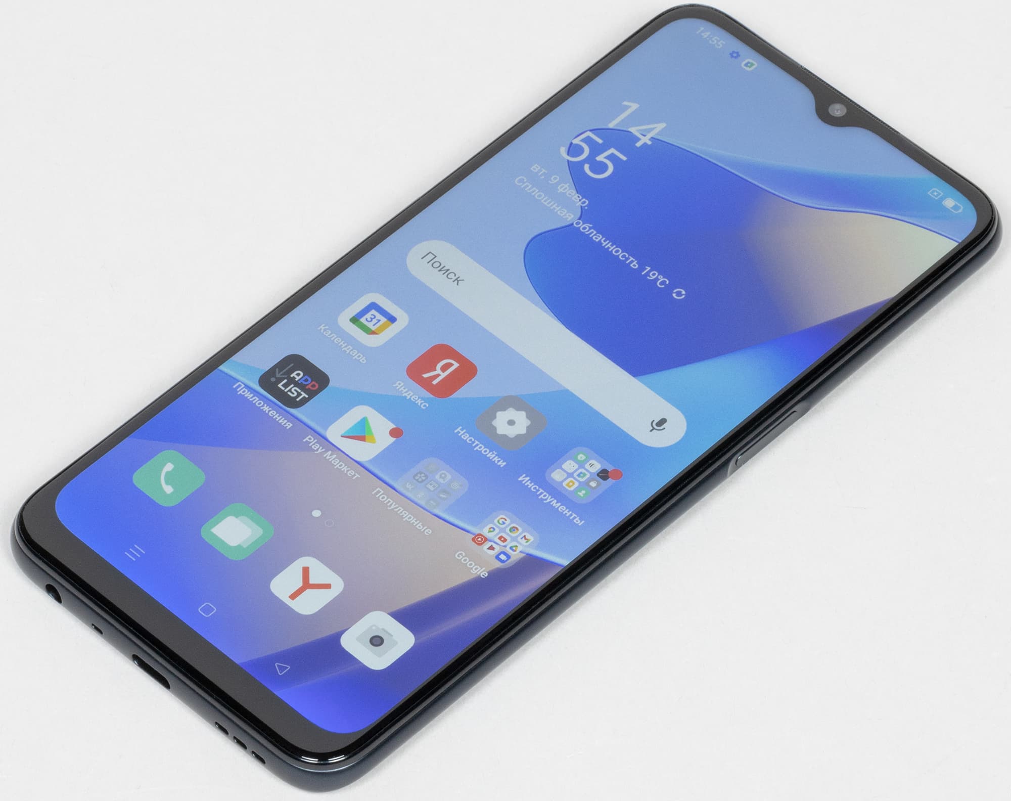Смартфон Oppo A16 выпускается в двух вариантах окраса: синем и черном. Корпус не получил полноценной защиты от воды и пыли.