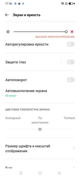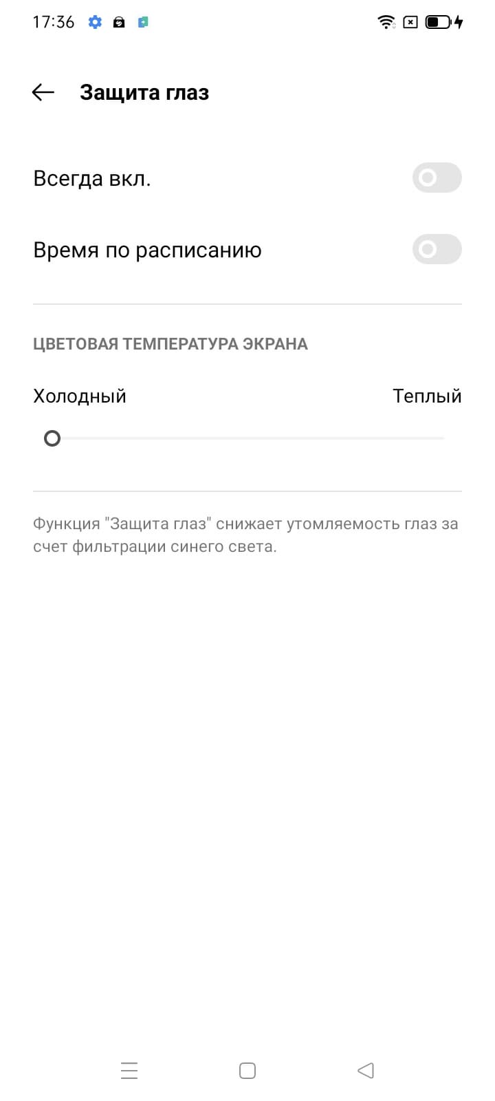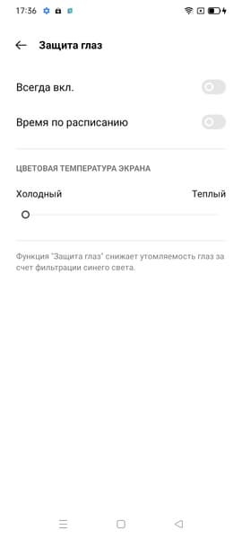 Также присутствует настройка (Защита глаз), позволяющая снизить интенсивность синей компоненты.