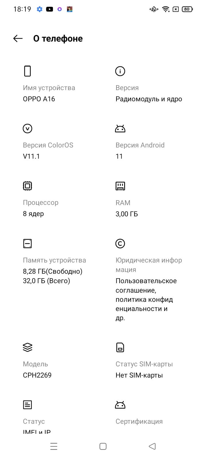 В качестве программной платформы Oppo A16 использует ОС Android 11 с собственной оболочкой ColorOS 11.1. Интерфейс не тормозит, но и плавности не чувствуется, есть ощущение резких переходов при перелистывании экранов. К организации и количеству настроек претензий нет. Ввиду наметившегося разделения фирменных оболочек на два «лагеря» стоит отметить, что в ColorOS 11.1 при смахивании сверху с любого места открывается одна и та же общая панель, содержащая и быстрые настройки, и уведомления. Есть игровой и детский режимы, навязчивой рекламы нет. На месте официальный магазин приложений Google Play и сервисы Google.