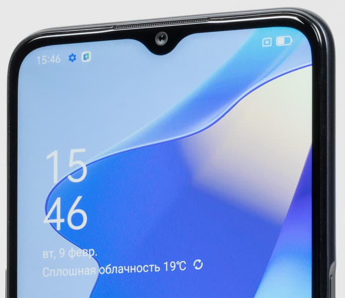 Фронтальная камера установлена не за круглым вырезом в матрице экрана, а в каплевидном вырезе по центру. Сейчас уже во всех ценовых категориях распространен круглый вырез, так теряется меньше места, но тут использован более старый распространенный вариант. Светодиодного индикатора событий, к сожалению, нет.