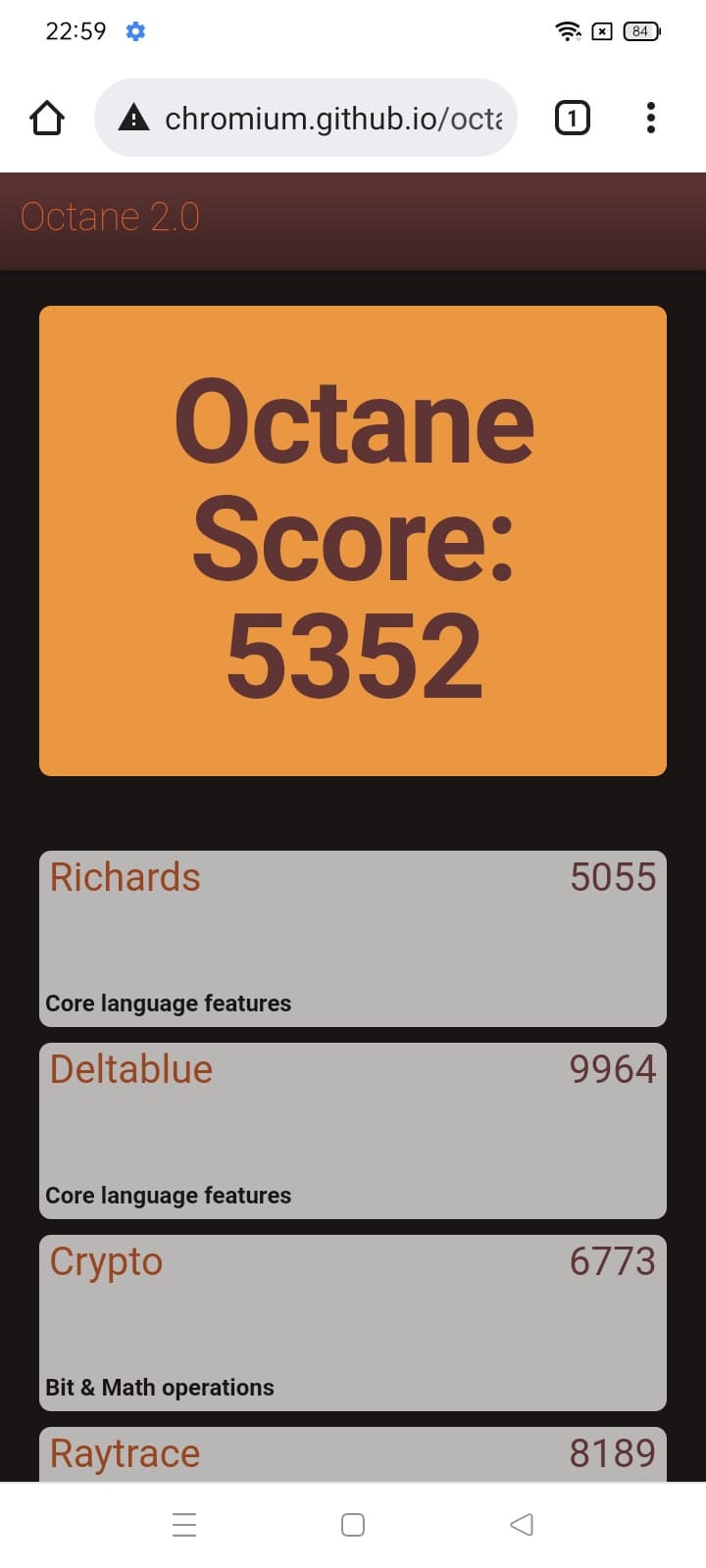 | Google Octane 2 (больше — лучше) | 5352 | 16378 | 19928 | 18041 | 16670 |