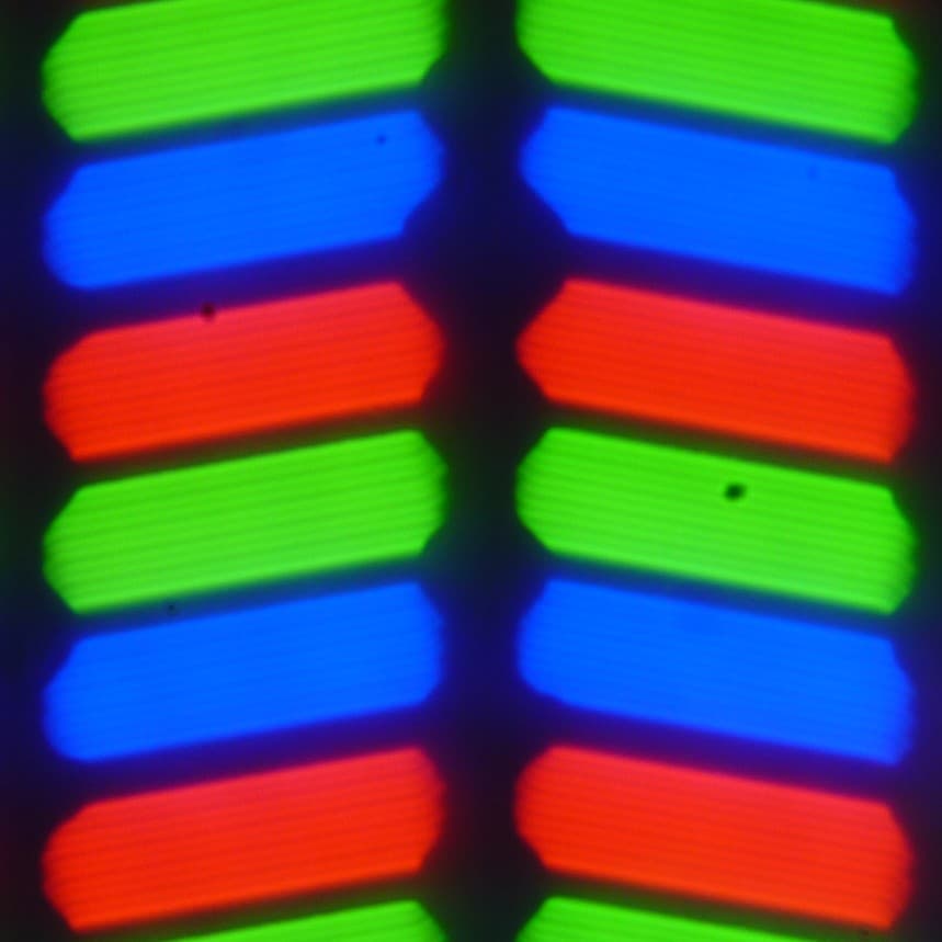 В данном смартфоне используется матрица типа IPS. Микрофотографии демонстрируют типичную для IPS структуру субпикселей: