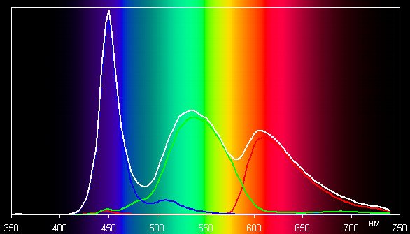 Поэтому визуально цвета на этом экране имеют естественную насыщенность. Спектры показывают, что светофильтры матрицы в умеренной степени подмешивают компоненты друг к другу: