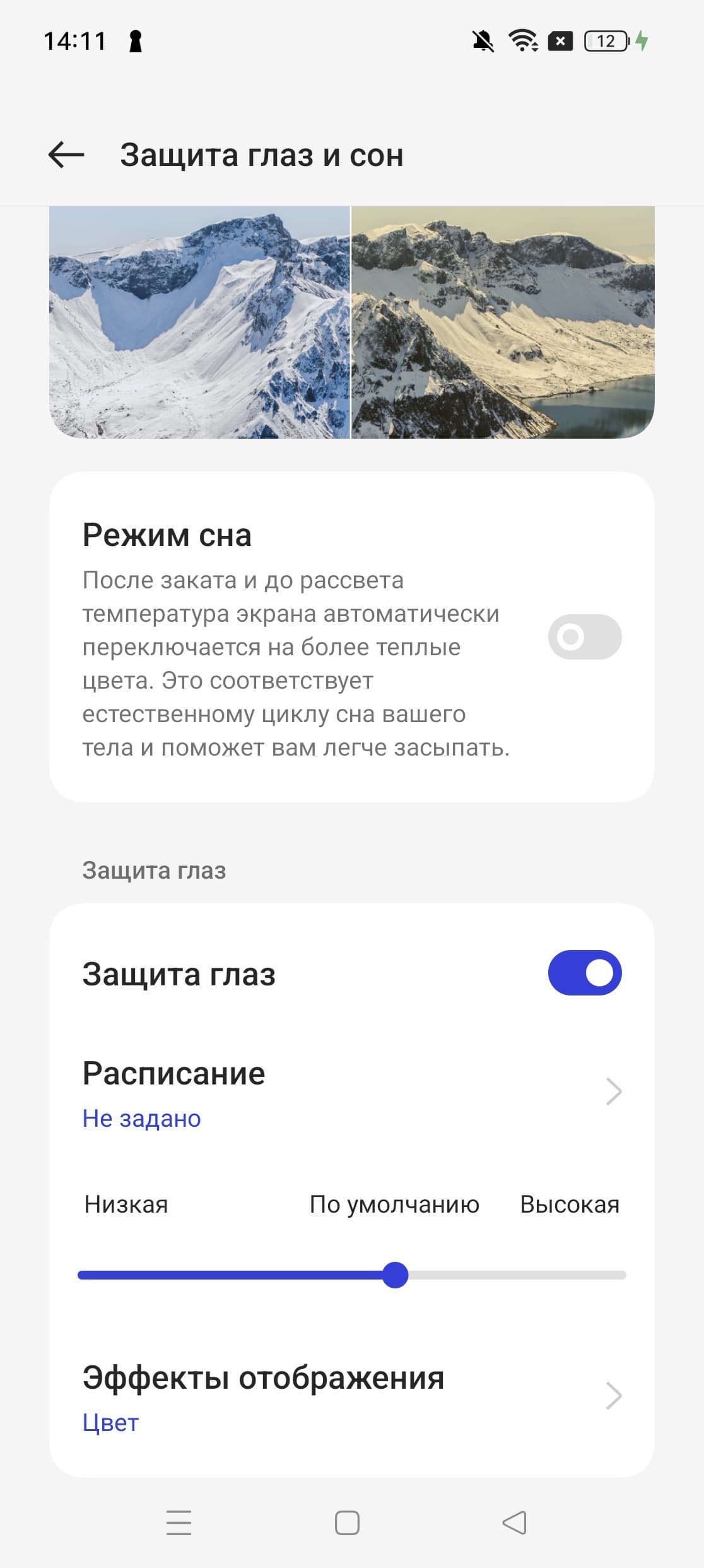 Также в настройках можно уменьшить интенсивность синей компоненты.