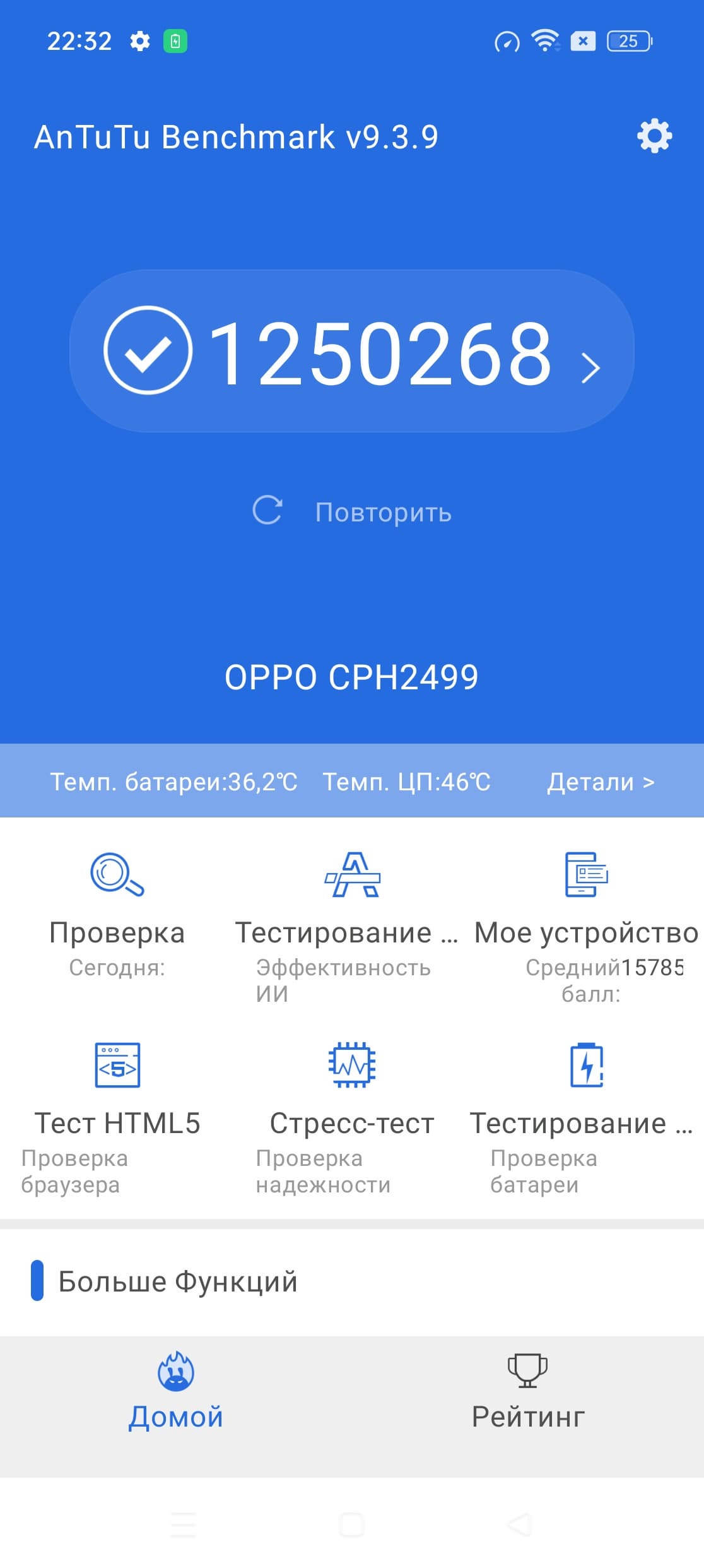 Платформа мощная, флагманская, выполнена по техпроцессу 4 нм. С ней смартфон набирает в AnTuTu более 1,25 млн баллов. Графический адаптер, естественно, поддерживает API Vulkan. Единственная странность — низкие показатели в браузерных тестах (мы проверяли на двух разных аппаратах в режиме обычной и повышенной производительности).