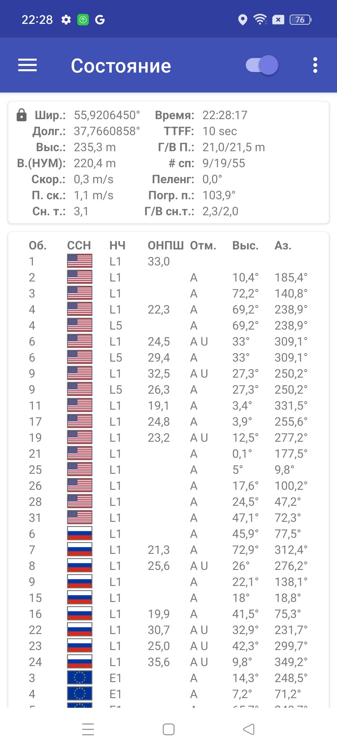 Двухканальный модуль спутниковой навигации работает с GPS, Глонасс, BDS, Galileo и QZSS. Первые спутники при холодном старте обнаруживаются быстро, точность позиционирования не вызывает претензий.