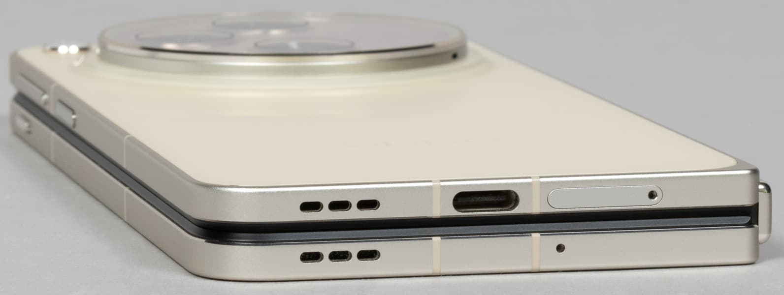 Смартфон оснащен несколькими мощными стереодинамиками, установленными в торец каждой из половинок. Эти четыре динамика выдают очень мощный и громкий звук, аудиосистема у аппарата поистине выдающаяся. Есть поддержка Bluetooth 5.3 и всех актуальных профилей для беспроводных наушников — aptX, aptX HD и LDAC. Жаль, конечно, что нет аудиовыхода для качественных проводных наушников.