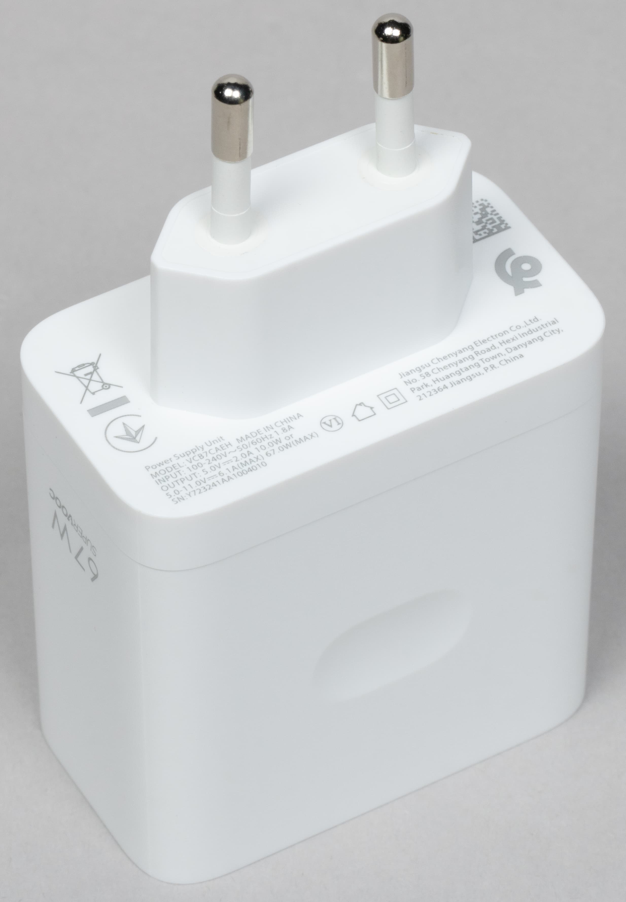 Комплект включает зарядное устройство (67 Вт), интерфейсный кабель и защитный чехол.