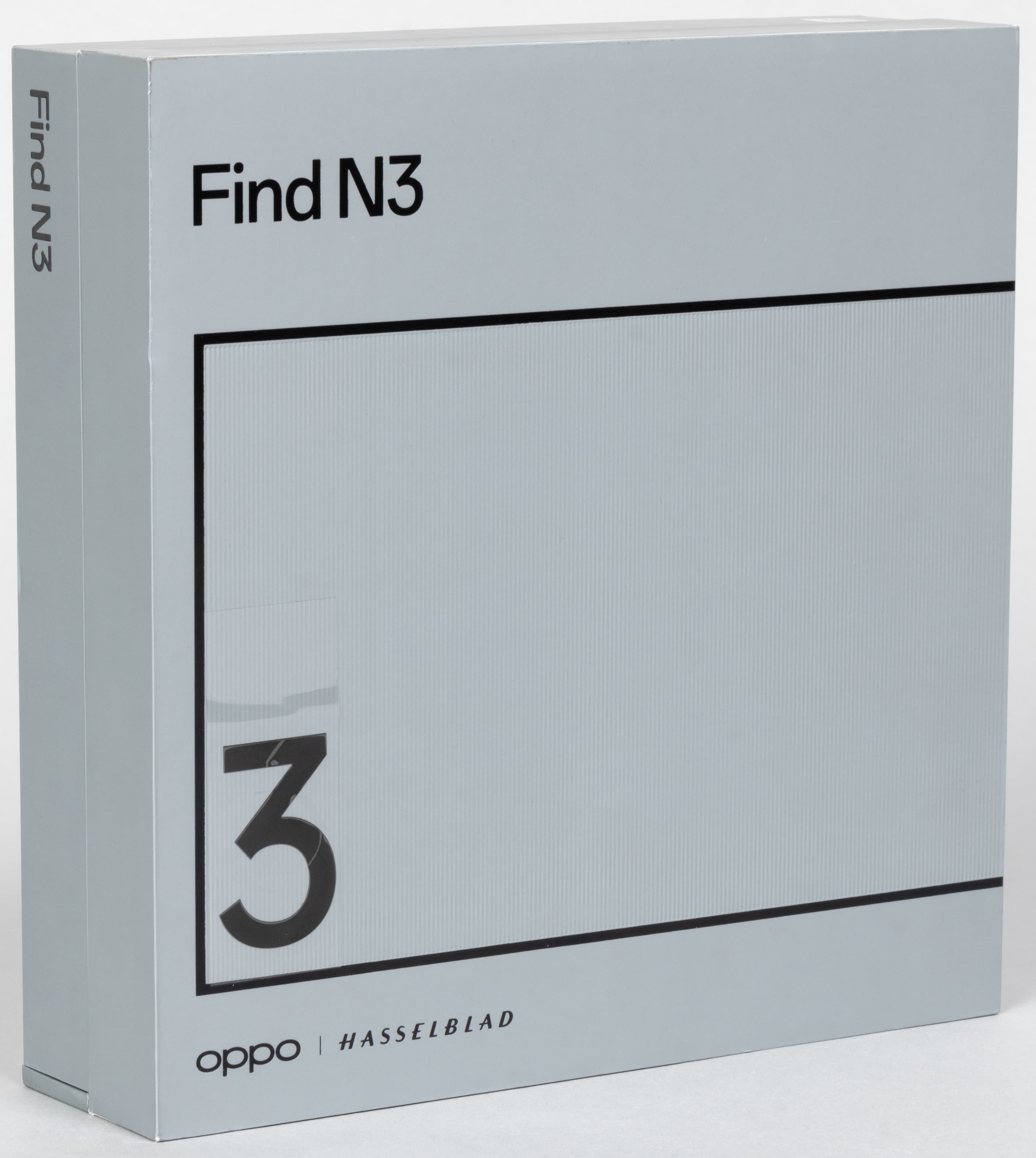 Смартфон Oppo Find N3 поставляется в квадратной картонной коробке, открывающейся на манер шкатулки.