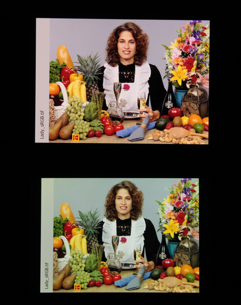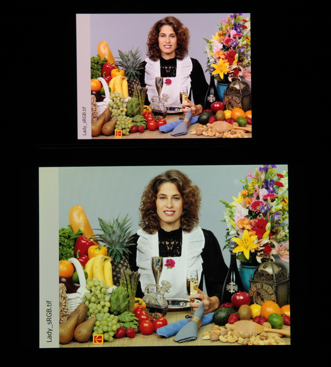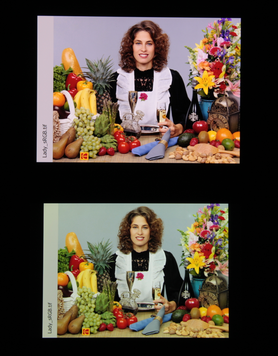 Отметим, что на экранах с широким цветовым охватом без соответствующей коррекции цвета обычных изображений, оптимизированных для устройств sRGB, выглядят неестественно насыщенными. Отсюда и рекомендация: в большинстве случаев смотреть кино, фотографии и все естественное лучше при выборе профиля Pro. Профиль Яркий уместен при просмотре материала с охватом DCI-P3, принятым в цифровом кинематографе, но в быту встречающимся редко.
