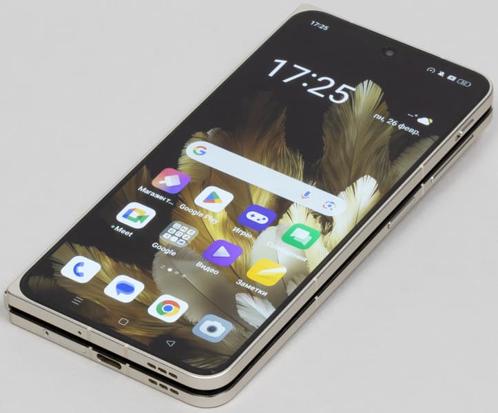 В сложенном состоянии смартфон не такой маленький, как предыдущая раскладушка Oppo, и не такой узкий, как Fold у Samsung, которыми можно управлять одной рукой. Здесь аппарат широкий, для одной руки никак не предназначен. При попытках управляться с ним одной рукой он часто выпадает. Раскрываются половинки тоже только двумя руками.