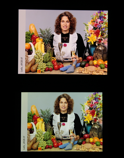 Мы включили эту функцию и проверили, как она работает. По факту никакой заметной подстройки цветового баланса при сильном изменении цветовой температуры источников света мы не обнаружили. Отметим, что сейчас сложившимся стандартом является калибровка устройств отображения к точке белого в 6500 К, но в принципе, коррекция под цветовую температуру внешнего света может принести пользу, если хочется добиться лучшего соответствия изображения на экране с тем, что видно на бумаге (или на любом носителе, на котором цвета формируются за счет отражения падающего света) в текущих условиях.