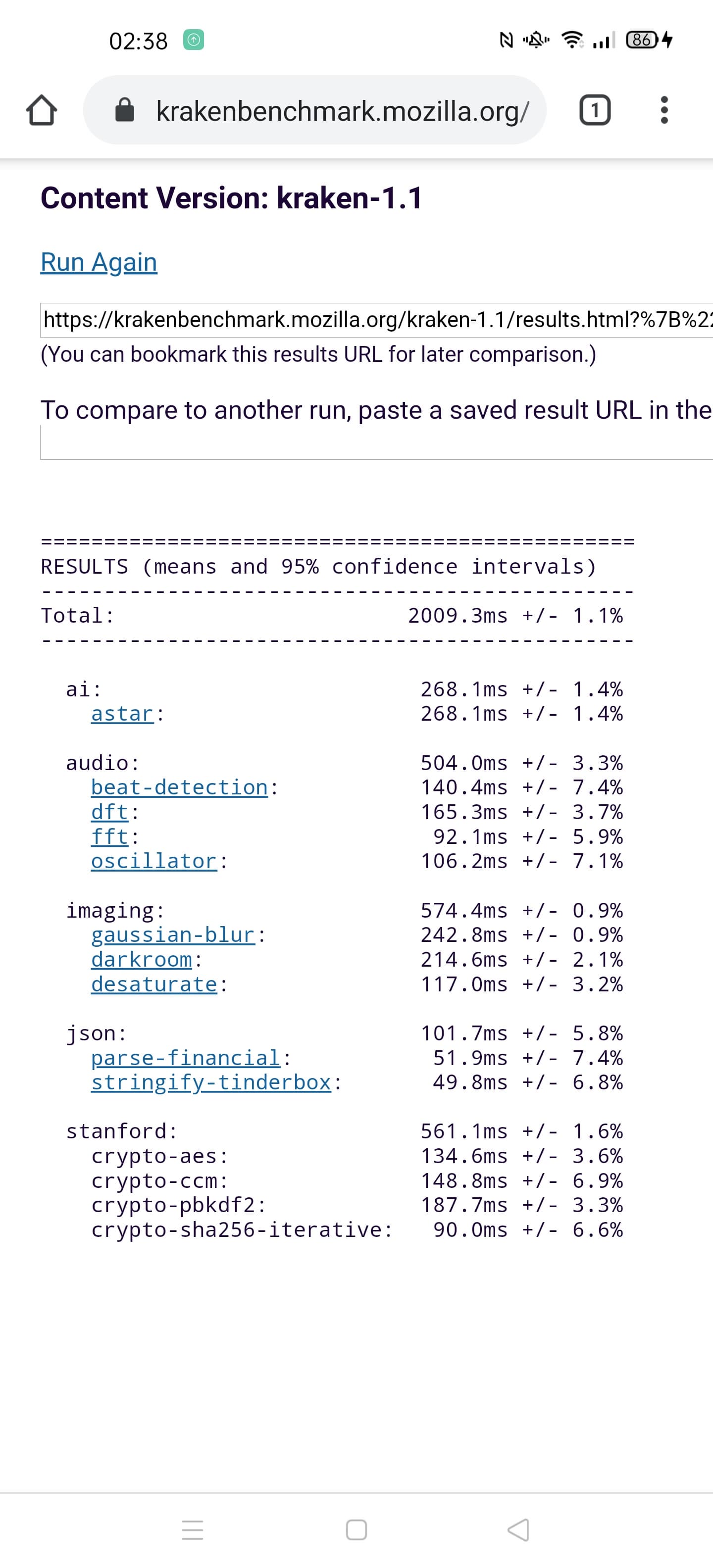 | Mozilla Kraken (мс, меньше — лучше) | 2009 | 2233 | 2446 | 2555 | 2109 |