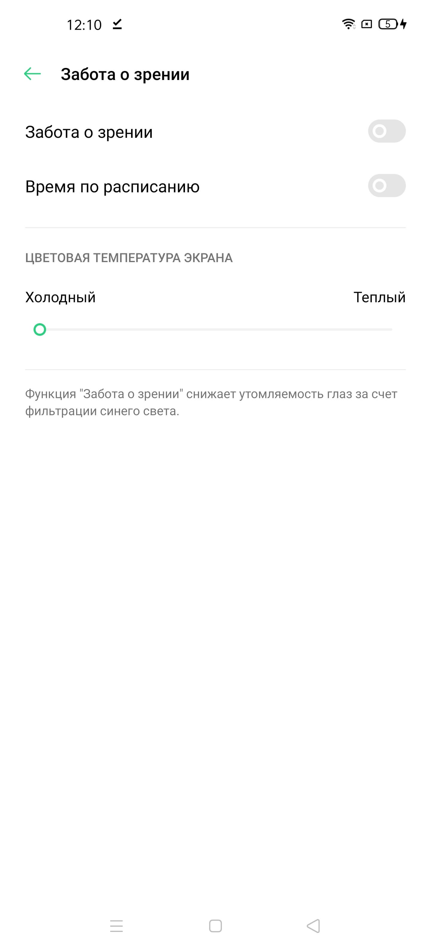 В этом устройстве есть возможность скорректировать цветовой баланс с помощью регулировки оттенка настройкой Цветовая температура экрана: