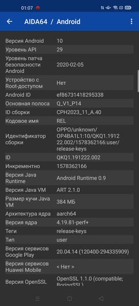 - Операционная система Android 10.0; ColorOS 7.1