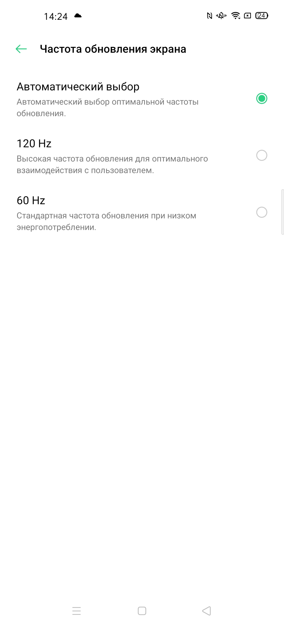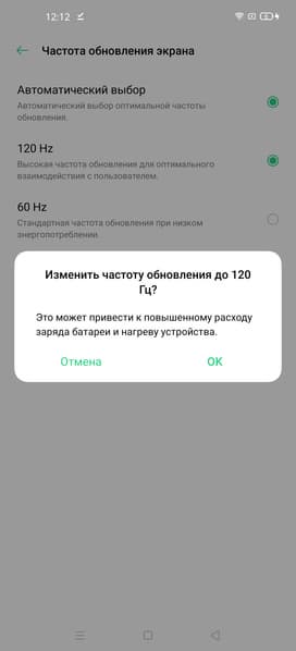 В настройках экрана можно включить режим с повышенной до 120 Гц частотой обновления: