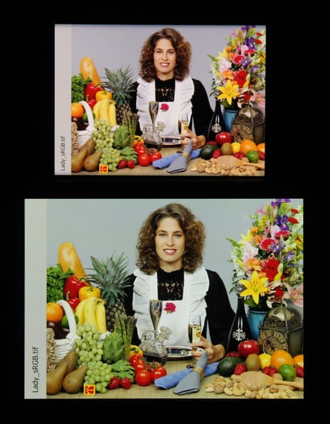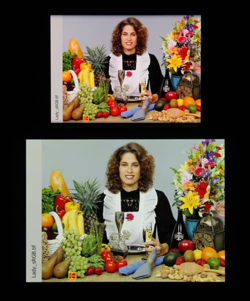 Отметим, что на экранах с широким цветовым охватом без соответствующей коррекции цвета обычных изображений, оптимизированных для устройств sRGB, выглядят неестественно насыщенными. Отсюда и рекомендация: в большинстве случаев смотреть кино, фотографии и все естественное лучше при выборе профиля Нежность. Профиль Кинематографические уместен при просмотре материала с охватом DCI-P3, принятым в цифровом кинематографе, но в быту встречающимся редко.