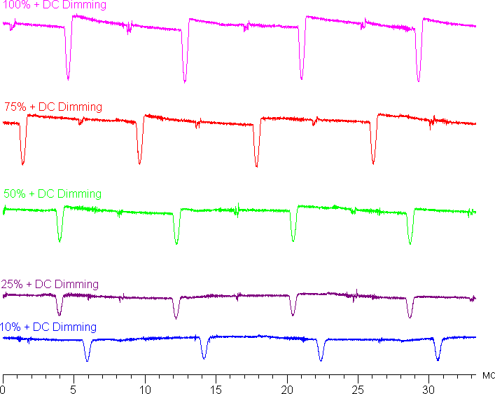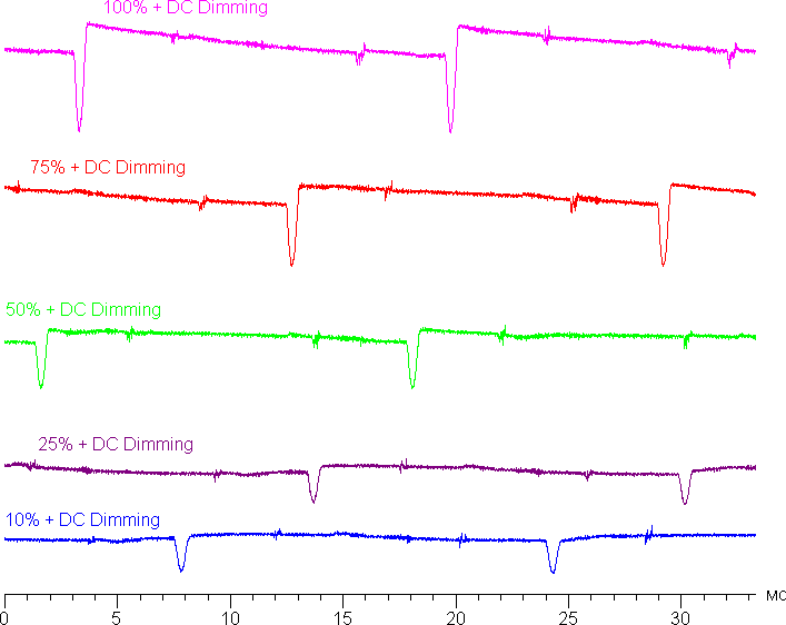 Видно, что на высокой и средней яркости частота модуляции увеличилась в два раза, но на низкой яркости характер модуляции не изменился.