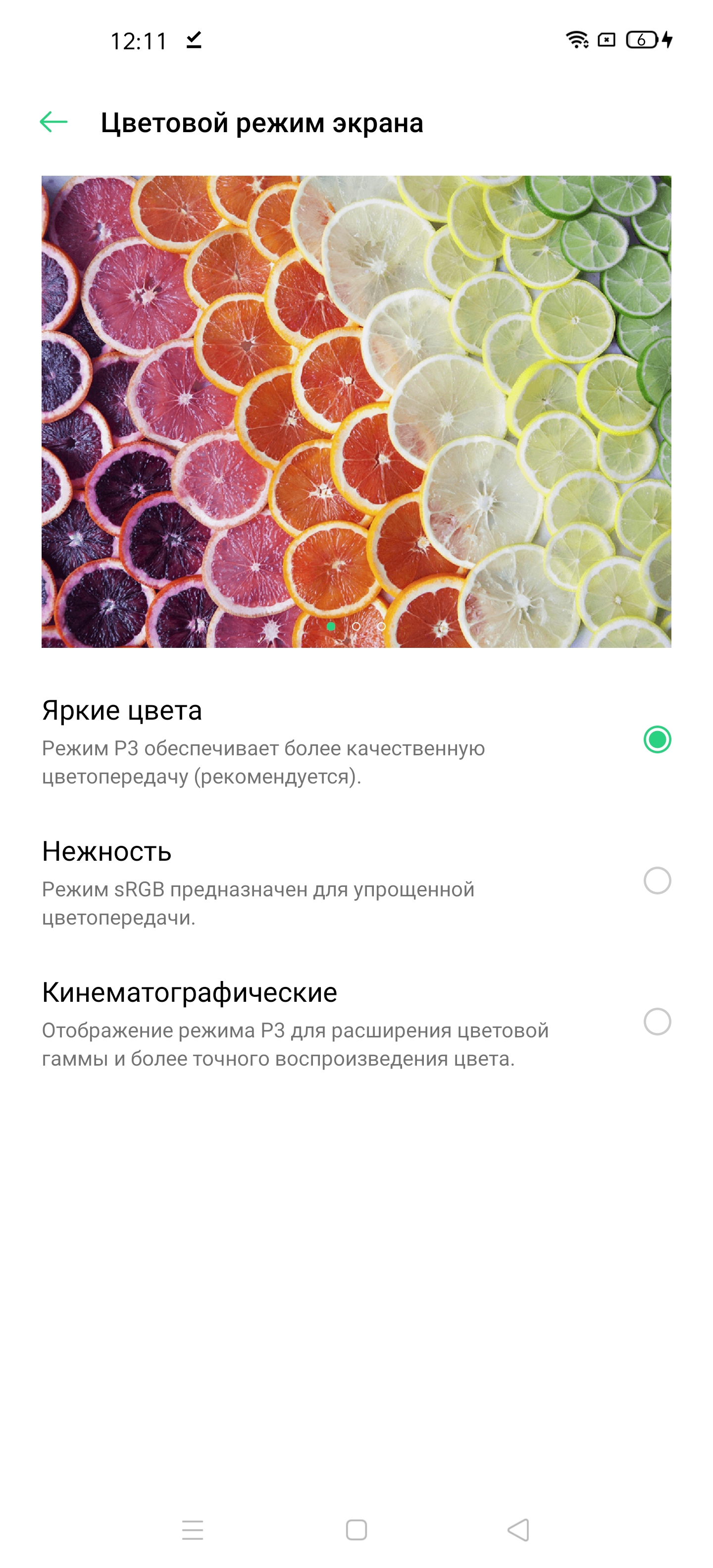 Фотография выше получена для профиля Яркие цвета в настройках экрана, всего их три: