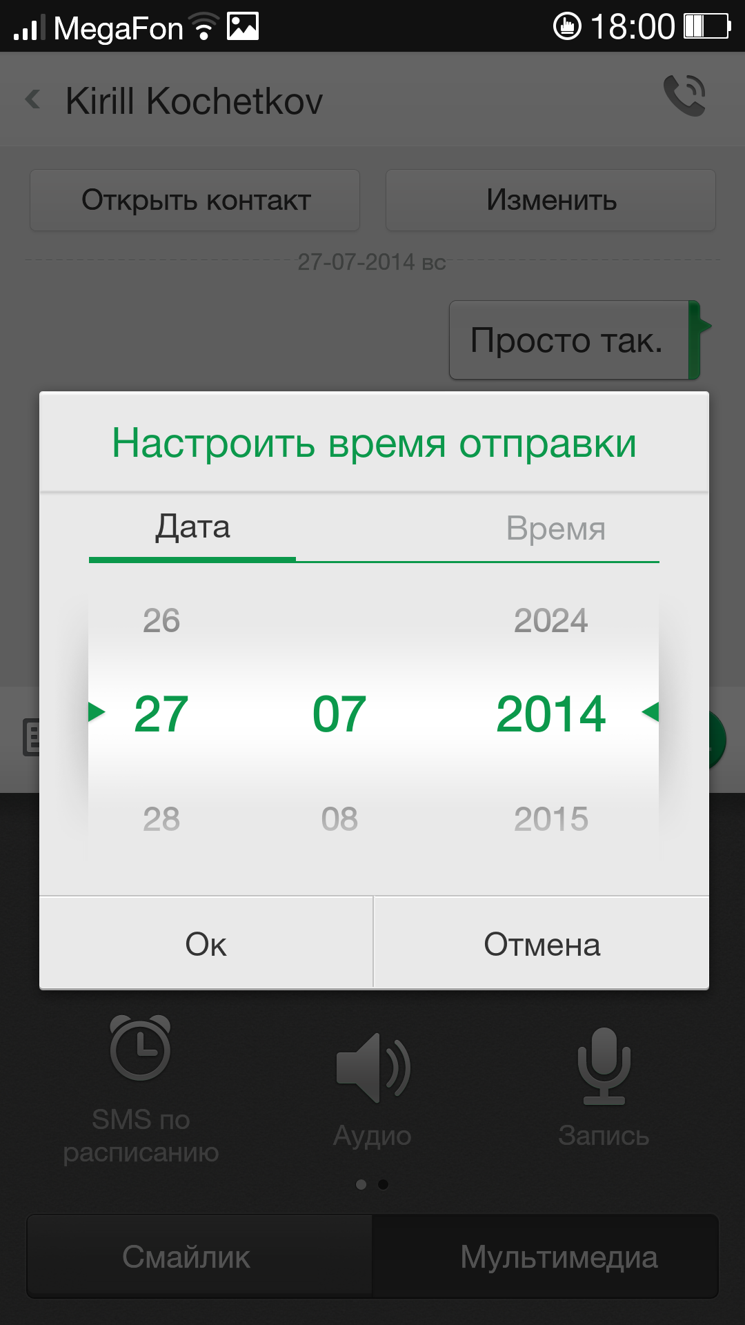Модуль для обслуживания сообщений SMS и MMS поддерживает группировку по абонентам, черновики, подпись и другие популярные возможности. Из ветки переписки можно сразу позвонить контакту, что достаточно удобно. Есть интересная возможность установки времени отправки сообщения. Не забыли и про вложения мультимедиафайлов, карточек контактов и местоположения. Причем последнее реализовано не через цифровые координаты, а в виде почтового адреса на русском языке. Предусмотрен специальный режим, когда новые поступающие сообщения отображаются во всплывающем окне поверх основного экрана.