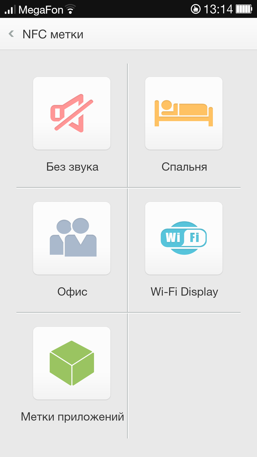 Настройки интерфейсов Wi-Fi, Bluetooth и NFC в целом стандартны. Упомянем поддержку Wi-Fi Direct, Wi-Fi Display, Android Beam, режима точки доступа. Из интересных функций присутствует встроенная система обнаружения NFC-меток, позволяющая переключать профили устройства и запускать программы.