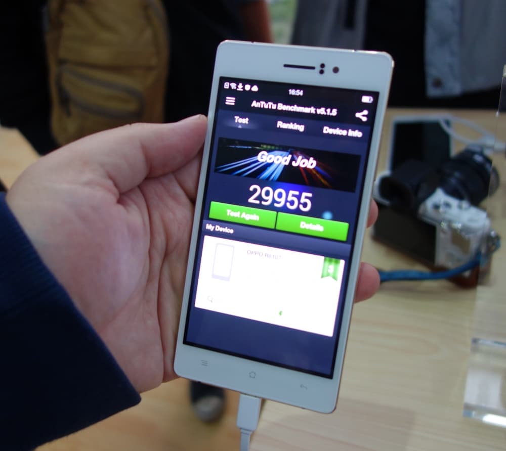 Также здесь применен новый графический ускоритель Adreno 405, однако полной ясности по поводу полного списка характеристик данной SoC еще нет. Тут стоит заметить только, что во время презентации опытный образец Oppo R5 продемонстрировал в тесте AnTuTu не слишком пока впечатляющие цифры.
