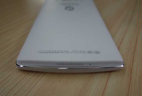 Здесь же, в нижнем торце размещена и решетка динамика, которая снаружи прикрывается этой изогнутой полосой так, что перекрыть звук становится просто невозможно. Кстати говоря, сами разработчики, представляя столь необычную форму корпуса смартфона, называют дизайн Oppo N3 индустриальным. Смартфон не претендует на звание имиджевой модели, здесь ставки делаются по большей части на технологии, дизайн вторичен, и призван не оттенять технологические находки, используемые в моделях серии N.