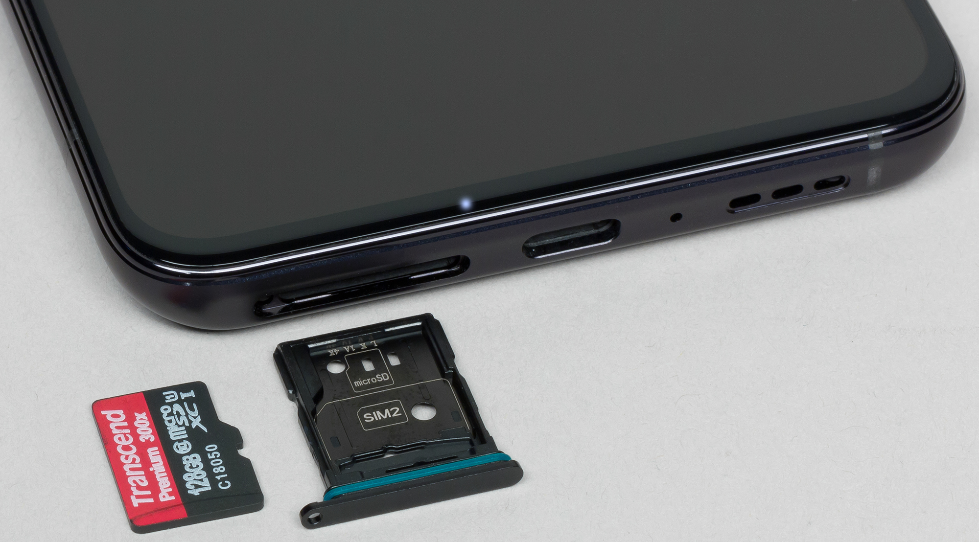 Разъем для установки карточек расположен в нижнем торце, там же установили динамик и разъем USB Type-C (не отцентрованный). А вот 3,5-миллиметрового выхода на наушники здесь нет, и это печалит. Хорошо хоть, что отверстие для микрофона отнесено достаточно далеко от слота под карточки, а не так, как у Huawei, которая любит устанавливать эти элементы по соседству.